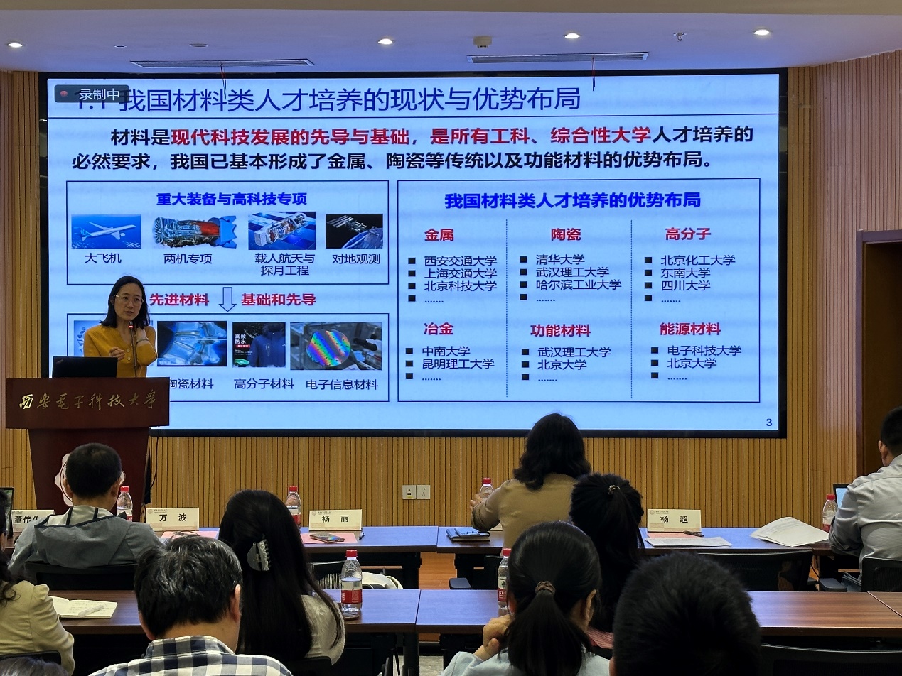 杨丽分享了学院在修订培养方案过程中的做法和经验。一是在广泛调研的基础上,分析了我校材料专业的教学科研基础和特色,明确了专业人才培养定位,并通过对学生能力培养的目标来梳理课程体系。二是结合学科发展前沿和课程内容设计,学院统筹校内外资源、组织一批相关领域的知名专家建设了一套优质教材,为专业核心课程的实施提供有力支撑。三是学院将教师的科研方向与承担的课程进行调整匹配,保证了课程效果的同时也实现了教师教研相长、更好发展。经过学院领导和教师近一年的努力,先进材料与纳米科技学院2个专业和1个实验班形成了相对成熟的课程体系及培养模式,为材料领域人才培养打下良好基础。