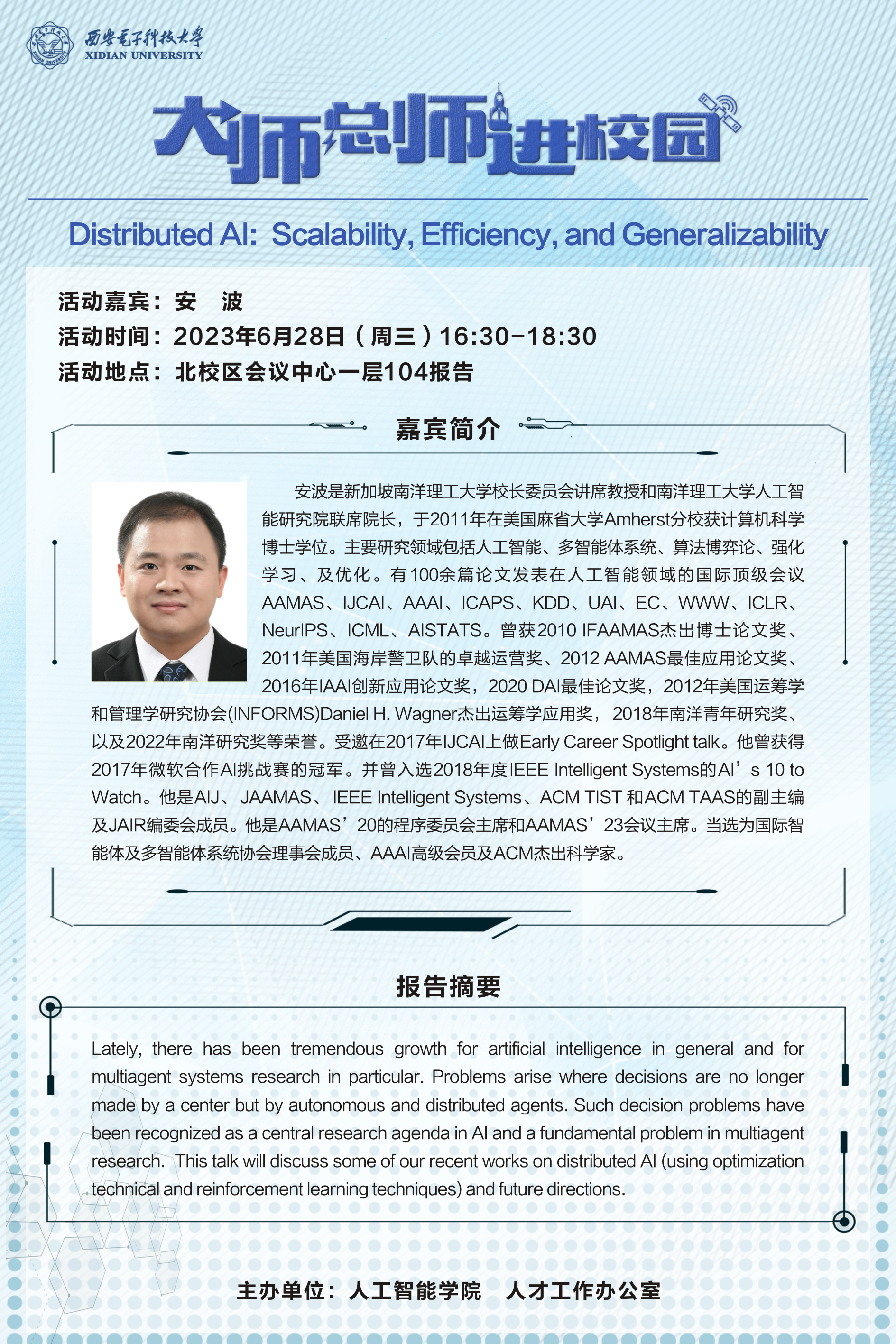 大师总师进校园 |南洋理工大学安波教授受邀来校讲座