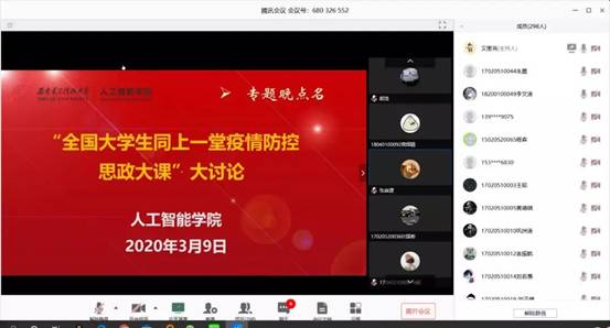 大课结束后,pp电子官方网站辅导员杨坤和白璐芸,分年级组织召开了线上的主题晚点名—“全国大学生同上一堂疫情防控思政大课”大讨论,通过腾讯视频、哔哩哔哩等直播软件,与全体智能学子交流分享了听课感受。通过学习,同学们纷纷表示对疫情有了更生动全面的了解,对我国社会制度有了更深度的自信,对青年一代的使命担当有了更清晰的认识。