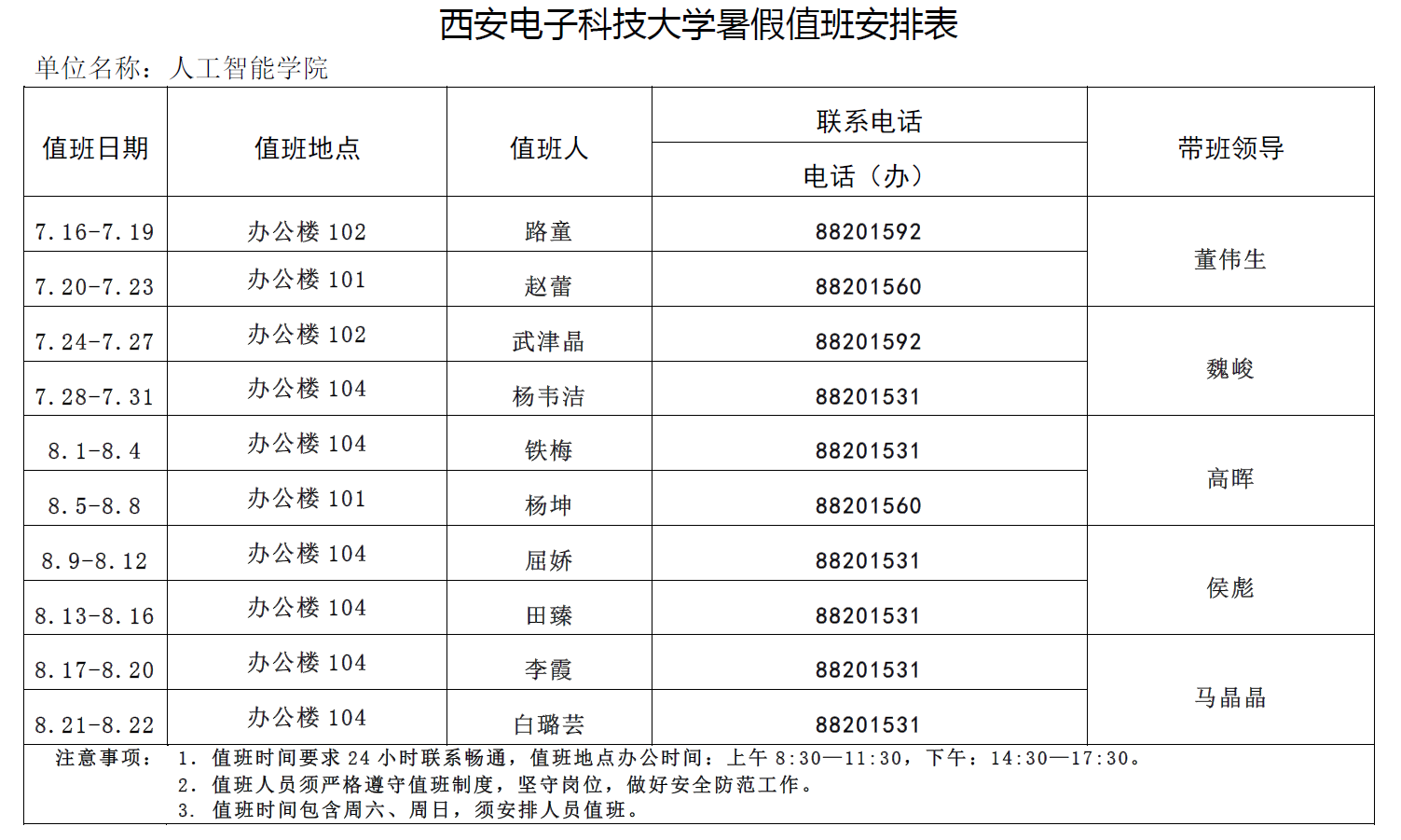 pp电子官方网站暑假值班安排表