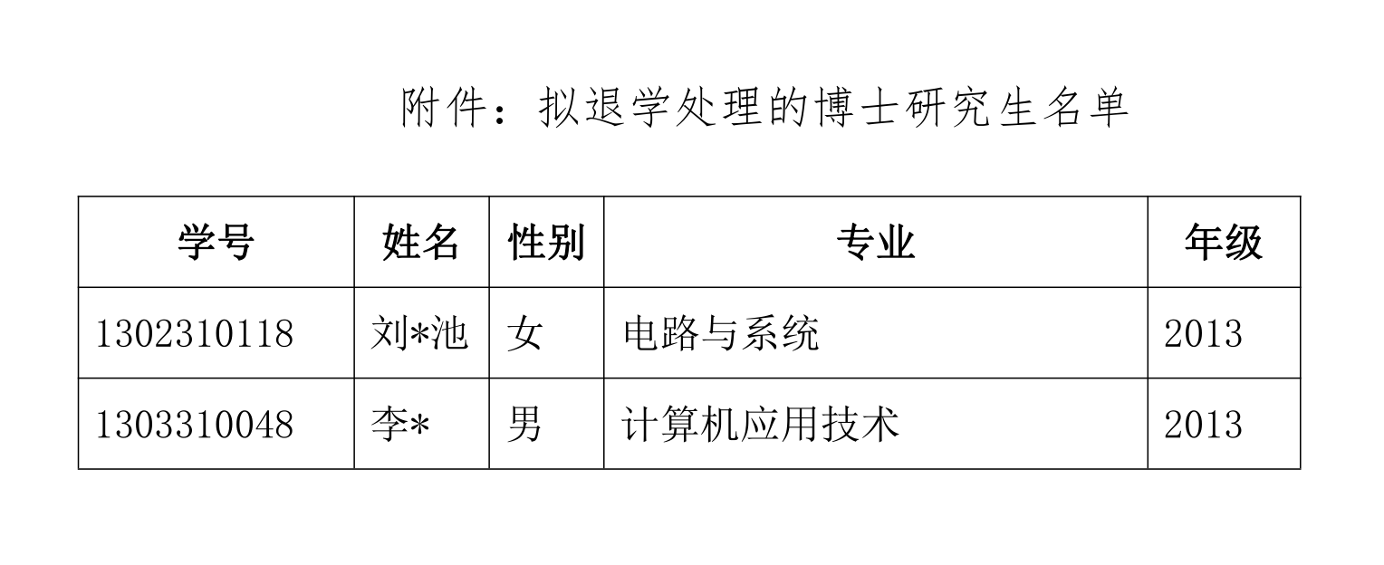 根据教育部《普通高等学校学生管理规定》第三十条和《pp电子官方网站研究生学籍管理实施细则》第二十六条有关规定,学校拟对超过最长学习年限的博士研究生作退学处理,现将名单(见附件)予以公告,公告期为2021年6月8日-2021年6月22日。