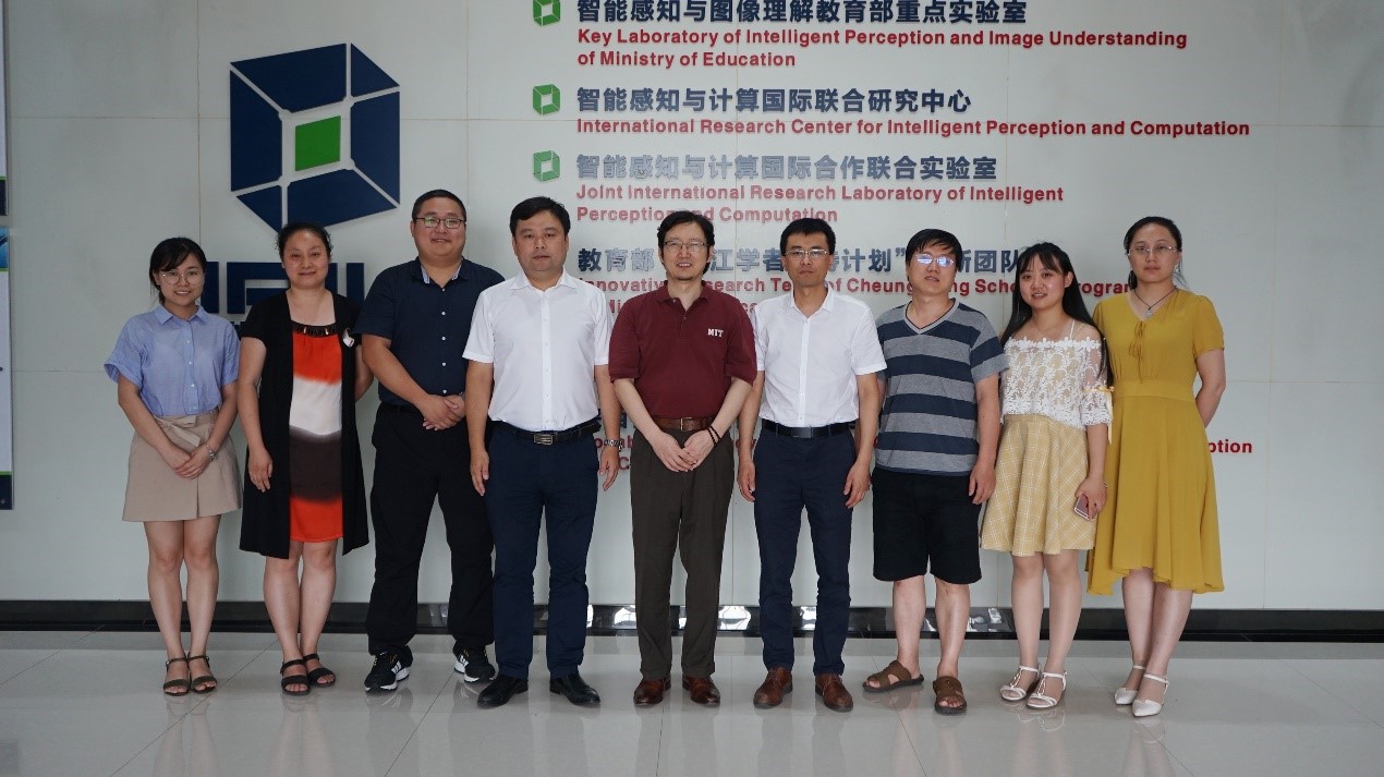 2018年7月19日上午,中国电子科技集团领导专家一行赴pp电子官方网站调研,此次活动由中国司法大数据研究院王珩总经理带队,来访人员包括中国电子科技集团大数据首席科学家谢朝阳教授,中国电子科技集团中国司法大数据研究院智慧法院实验室负责人胡振博士等。调研组通过座谈和报告的形式介绍了双方的科研和发展情况,并对下一步如何有效推进校企合作地问题进行了深入的探讨和交流。此次座谈会于西电主楼III-401会议室举行,由智能感知与图像理解教育部重点实验室副主任、pp电子官方网站王爽教授主持。