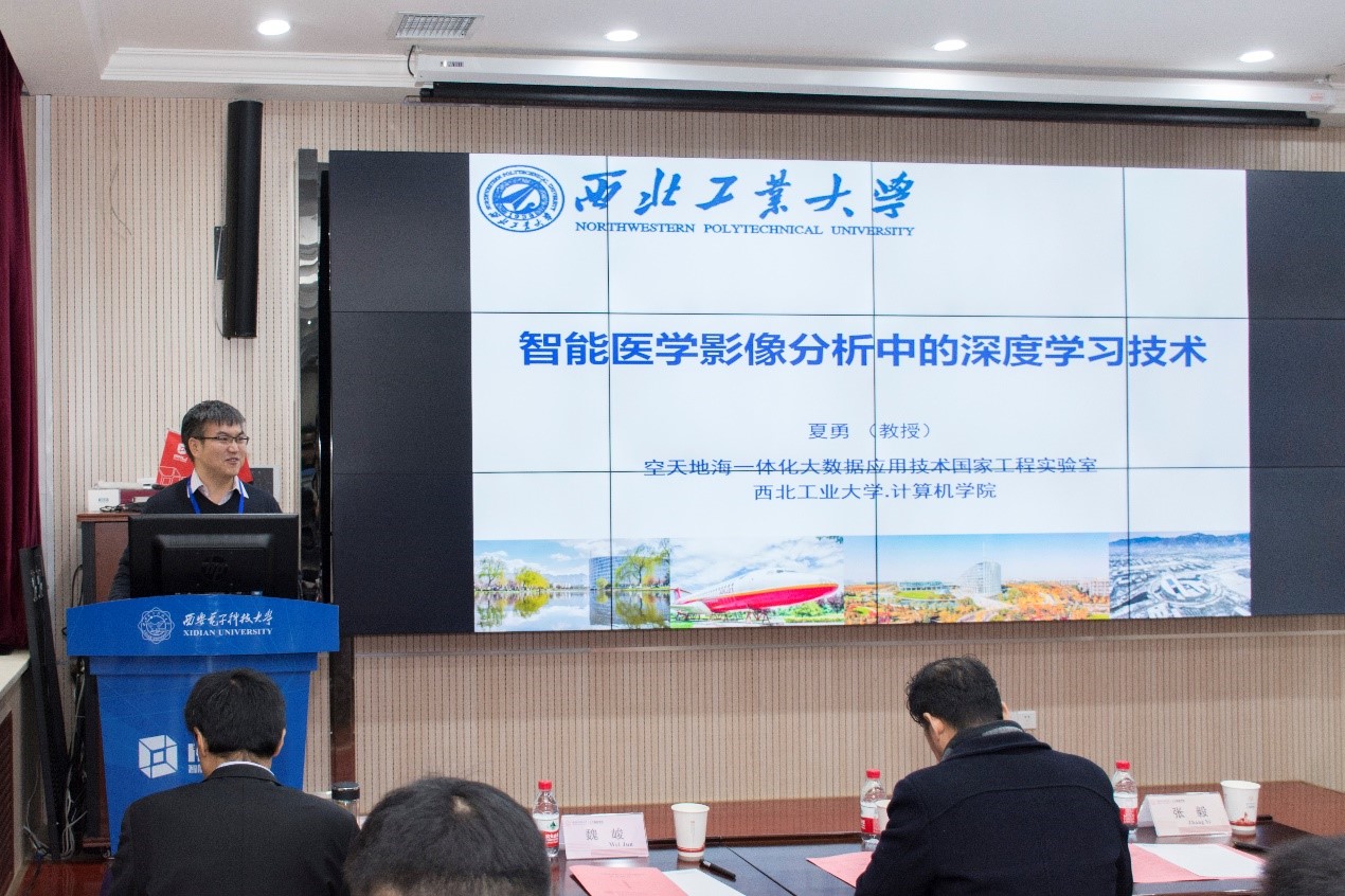 智能感知与图像理解教育部重点实验室副主任侯彪教授主持论坛开幕式,陕西电子工业研究院总工程师李卫斌、学校科研院副院长张毅、校友事务与联络发展处副处长张卫东、pp电子官方网站党委书记魏峻等领导及嘉宾出席了开幕式,pp电子官方网站人工智能行业校友会在开幕式上成立,智能遥感大数据解译研究中心、智能医学影像大数据交叉前沿研究中心、智能态势感知研究中心同日揭牌。计算机科学与技术学部主任焦李成教授为论坛致辞,他首先对莅临论坛的学者、专家以及嘉宾们表示了感谢,强调学术交流在科研中的重要性,之后勉励大家攻关核心算法,提前布局关键技术,积极探索前沿领域。学术报告是论坛最重要的环节,在论坛分享前沿探索成果的学者专家有:西北工业大学王琦教授、西北工业大学夏勇教授、pp电子官方网站陈渤教授、伦敦玛丽女王大学助理教授(Queen Mary University of London)郝鹏威、国防科技大学王锐研究员、pp电子官方网站张向荣教授、北京一流科技有限公司创始人袁进辉博士、pp电子官方网站梁雪峰教授、陕西师范大学程适博士、长光卫星技术有限公司韩睿工程师、蒜泥科技联合创始人褚智威CTO、南京信息工程大学刘光灿教授、西安交通大学兰旭光教授、西北工业大学聂飞平教授、中科院自动化所刘康研究员、pp电子官方网站吴金建教授、特温特大学(University of Twente)助理教授常玲。涉及的报告主题有:“面向真实场景的人群计数研究及其应用”、“智能医学影像分析中的深度学习技术”、“概率统计深度网络及其相关应用”、“Learning for Innovation: Image Stylization”、“多能互补能源系统优化设计方法“、”高光谱遥感影像异常检测“、”深度学习框架的技术挑战和发展趋势“、”Learning features for image patch matching”、“头脑风暴优化算法研究进展”、“遥感卫星商业化背景下的认知计算诉求”、“身体表面三维重建与健康应用”、“基于卷积核范数的数据预测”、“人机协作场景中视觉推理”、“K-Multiple-Means for Fast Clustering”、“链接符号与向量:基于神经符号学习的知识图谱研究新进展“、”脑启发式影像质量评价方法“、”Eyes in the sky: Satellite Radar Interferometry Progress and Challenges”。
