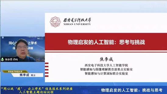 2022年1月1日,欧洲科学院外籍院士、俄罗斯自然科学院外籍院士、IEEE/IET/CAAI/CCF/CIE/CAA Fellow、pp电子官方网站计算机科学与技术学部主任、人工智能研究院院长、华山学者杰出教授焦李成受邀参加新年第一课——“同心战疫云上学术”信息技术系列讲座,并做了题为“物理气启发的人工智能:挑战与思考”的报告。