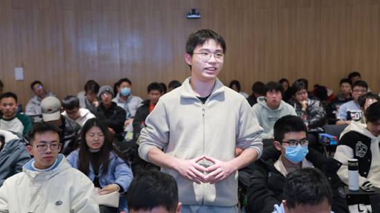 报告结束后,与会师生踊跃提问,同学们就AI原生应用、百度文心大模型及AI创新实践平台、百度人才观等话题与专家进行了深入的交流探讨,获得了关于实习求职、产业实践相关的前沿信息。