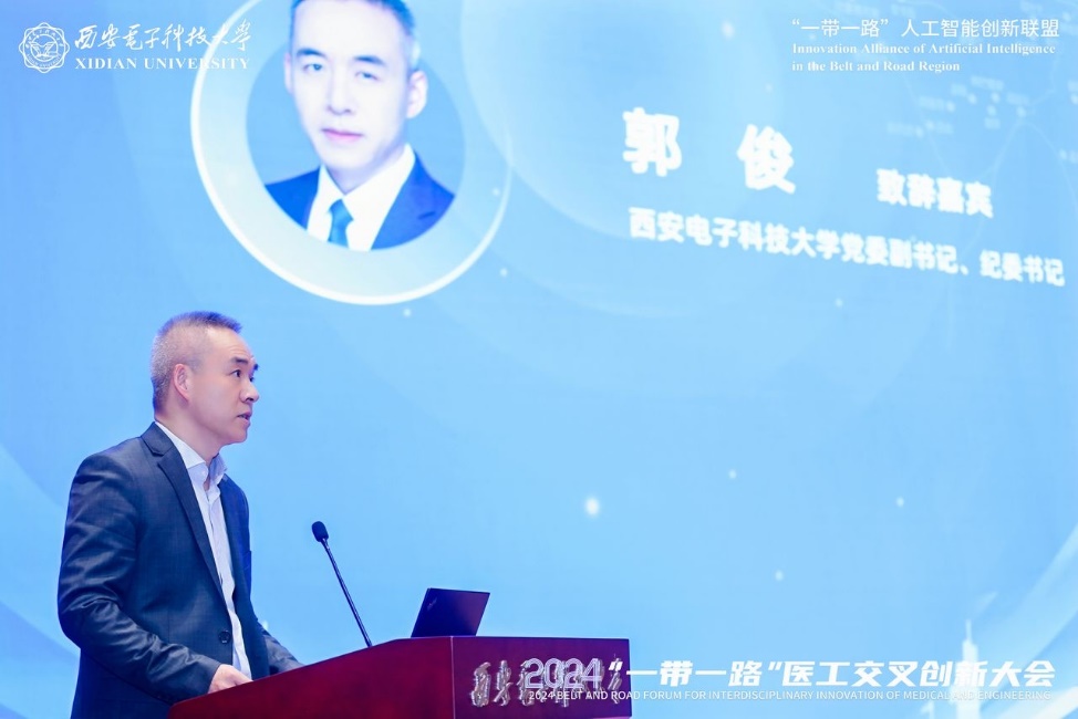 上午9点,在pp电子官方网站执行院长侯彪教授的主持下,会议开始。开幕式上,pp电子官方网站党委副书记、纪委书记郭俊致辞,祝贺大会顺利举办,并对出席论坛的领导、专家学者致以热烈的欢迎和衷心的感谢。郭俊表示,pp电子官方网站作为“‘一带一路’人工智能创新联盟”的发起单位,持续主办“一带一路”系列会议,推动人才培养供给侧与区域产业发展需求侧的深度耦合,促进学术交流、人才培养、科学研究、政策研究、社会服务等多方面区域合作与发展。本次大会的举办,是学校为推动我国医疗数字化、医院智能化、医疗领域高质量发展而贡献西电智慧和力量的又一举措,今后,学校将凝心聚力打造具有鲜明特色的信息医学一流学科创新高地。
