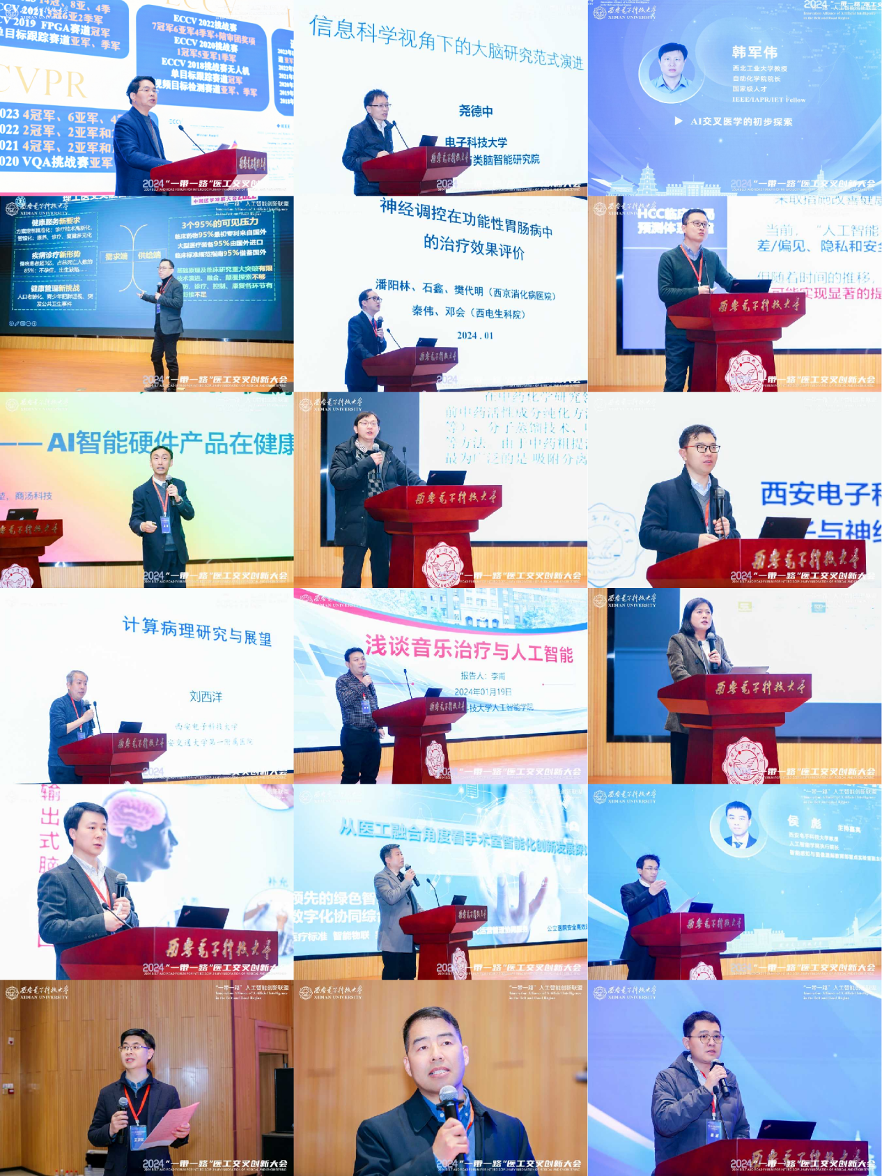 大会特邀了14位专家学者作主旨报告:欧洲科学院外籍院士、“一带一路”人工智能创新联盟理事长、IEEE/IET/CAAI/CAA/CIE/CCF Fellow焦李成院士,电子科技大学神经信息教育部重点实验室主任、国家级人才、AIMBE Fellow尧德中教授,西北工业大学自动化学院院长、国家级人才、IEEE/IAPR/IET Fellow韩军伟教授,西安交通大学生命学院院、国家级人才徐峰教授,西安交通大学第一附属医院副院长、国家级青年人才张谞丰教授,西京医院消化内科主任医师、国家级青年人才、中国青年科技奖获得者潘阳林教授,pp电子官方网站生命科学技术学院执行院长、国家级人才王忠良教授,陕西中医药大学、世界中医药联合会中药系统与工程委员会常务理事左振宇教授,商汤科技联合创始人马堃博士,pp电子官方网站副院长、国家自然科学奖获得者李甫教授,pp电子官方网站软件工程研究所常务所长刘西洋教授,pp电子官方网站先进医学成像与智能诊疗国际联合研究中心主任张毅教授,pp电子官方网站智能科学与技术系主任缑水平教授,医标智联数字科技有限公司总经理张祥。他们围绕“信息科学视角下的大脑研究范式演进”、大模型时代的医工交叉创新面临的挑战与思考、人工智能与临床问题研究以及AI交叉医学的初步探索等方面为我们带来了一场精彩纷呈、紧贴前沿的专题报告,全方位、多角度地呈现了人工智能领域与医学交叉方向的现状及未来。