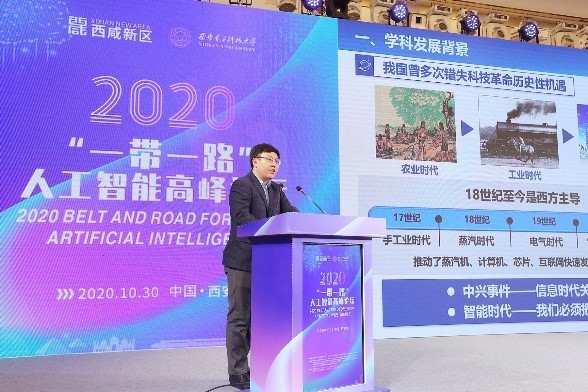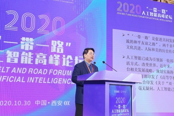 10月30日,“2020年‘一带一路’人工智能高峰论坛”在古丝路起点城市西安举办。20余位来自中、英、德等国以及中国香港特别行政区的院士、IEEE Fellow、专家,阿里、京东、华为等标杆企业的领军人物围绕“人工智能发展的前沿与挑战”、“‘人工智能+教育’模式的探索与实践”、“全球化背景下人工智能产教融合发展”等议题进行了主旨报告及深度研讨,吸引了线上线下近百万人观看和聆听大会报告。