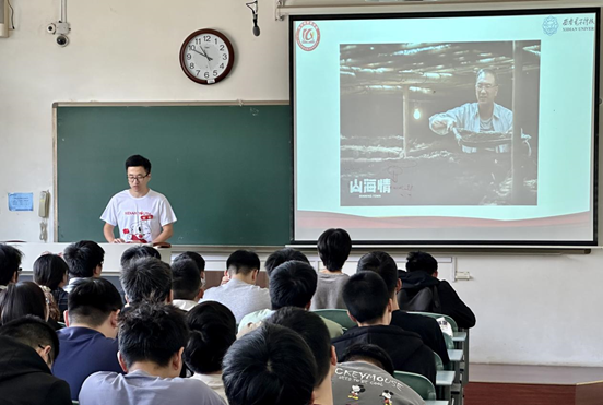 随后,大学生党史校史宣讲团成员章宏同学以《科技创新促发展,核心技术牢把握》为题进行了主题宣讲。科技是第一生产力,人才是第一资源,创新是第一动力,他首先与大家分享了众多优秀人物的科技攻关故事,如“世界菌草技术之父”的林占禧教授,向旱作水稻要口粮的朱有勇院士等,随后结合学习习近平总书记关于人工智能发展的重要讲话精神,号召大家“主动承担时代赋予我们的使命和责任,以理想者、担当者、奋斗者的昂扬风貌,激荡起民族复兴的澎湃春潮,用青春的智慧和汗水打拼出一个更加美好的中国。”