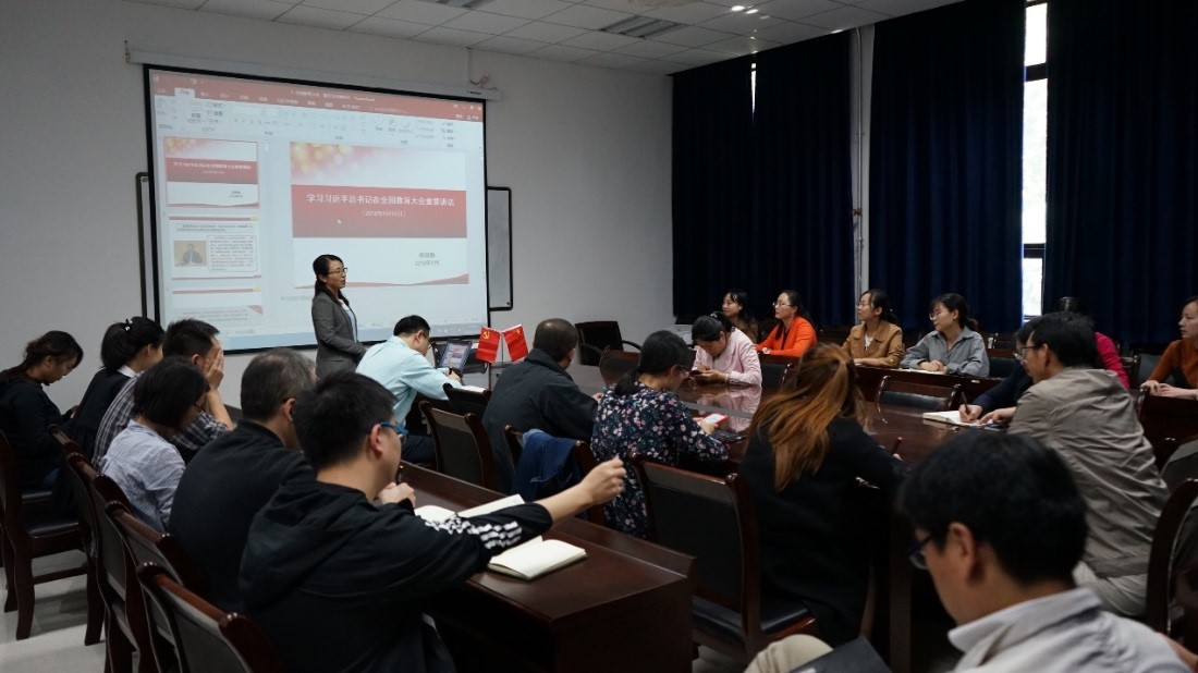 会议首先由党支部书记张向荣教授带领大家共同学习了习近平总书记在全国教育大会上的重要讲话,她指出总书记的重要论述将教育事业的重要性提升到了新的高度,对高校教育工作者是巨大的鼓舞和激励。会议要求支部党员认真学习总书记讲话精神,弘扬爱国奋斗精神,爱岗敬业,为培养社会主义合格建设者和接班人贡献力量。