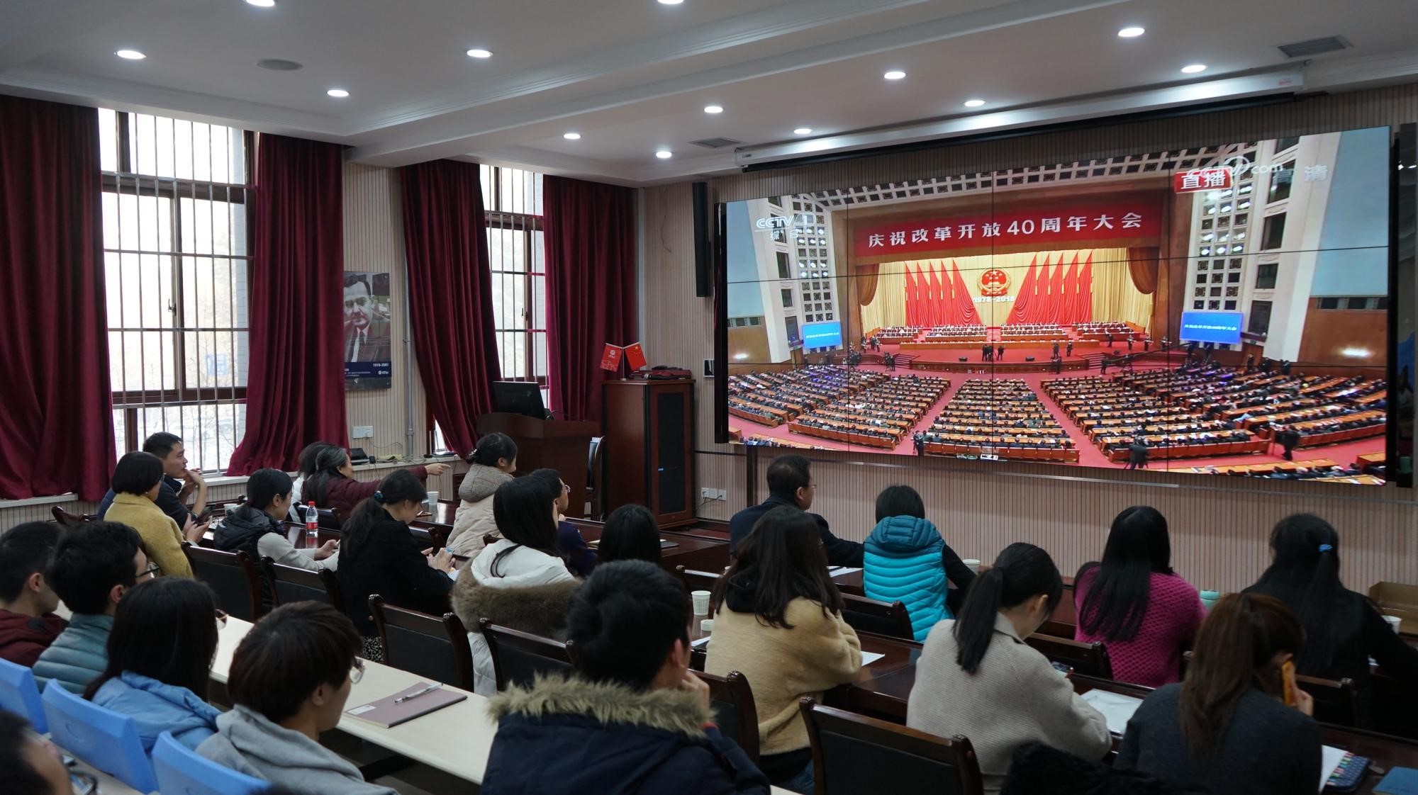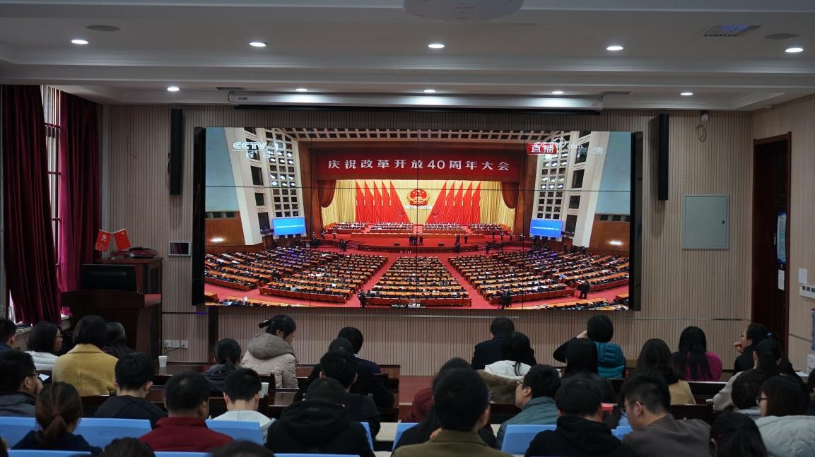 西电新闻网讯(通讯员 赵蕾)庆祝改革开放40周年大会18日上午10时在人民大会堂举行,中共中央总书记、国家主席、中央军委主席习近平出席大会并发表重要讲话。pp电子官方网站组织党员干部和广大师生观看庆祝改革开放40周年大会,观看人员包括党委书记魏峻,智能感知与图像理解教育部重点实验室副主任侯彪教授,党委副书记高晖,副院长马晶晶,全体老师和各学生党支部代表。