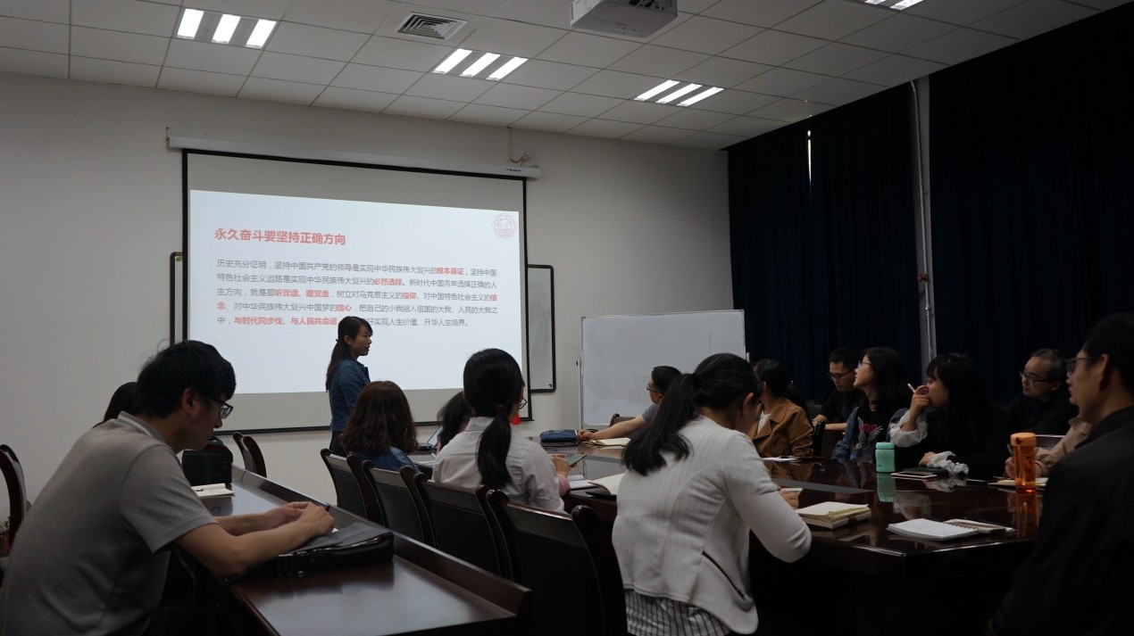 会议首先由党支部书记张向荣教授带领大家学习了习近平总书记在纪念五四运动100周年大会上的重要讲话,重点学习了总书记关于青年人坚持“永久奋斗”革命传统的重要指示,以及对新时代中国青年提出的“六点要求”。她指出,总书记的青春寄语深刻阐明了五四精神的核心要义,对智能所党支部全体教师的科研与教学工作具有重要指导意义。会议要求支部党员认真学习总书记讲话精神, 牢记总书记对新时代青年人的殷切期望,为人工智能教育的跨越式发展贡献力量。