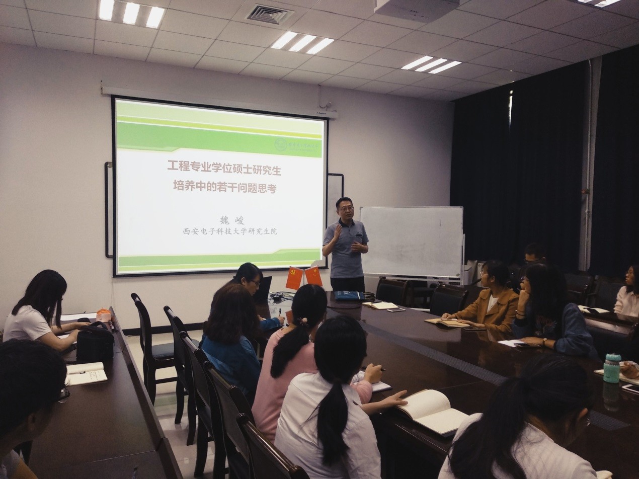 之后开展了支部教师党员本领提升计划的培训,魏峻书记以《工程专业学位硕士研究生培养若干问题的思考》为主题对支部党员开展了针对工程专业硕士的专项培训。他从培养目标、培养现状与培养模式方面分析了当前工程专业学位硕士培养方式存在的问题与不足,要求大家明晰工程学位硕士的培养定位,更好地服务于工程硕士研究生的职业发展需求和社会多元化人才需求。