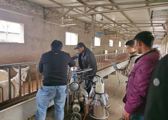 随后,大家一起听取了专家团队关于奶山羊智慧养殖系统的详细报告。目前大数据中心已经建成视频监控系统、信息化平台和网络化改造,实现了网络化和云服务,奶山羊产业智慧养殖数据中心的建成有利于提升蒲城奶山羊的智能化管理效率和产能,降低奶山羊的发病率,提高奶山羊羊奶质量,降低养殖成本提升奶山羊规模化养殖效益。下一步,学院专家团队将安装羊奶自动检测系统,提高羊奶检测精准度,为奶山羊智慧养殖提供更加精准的数据支撑。挂牌仪式结束后,学院专家团队一行前往党定村奶山羊养殖基地现场观摩,对羊奶自动检测系统相关设备进行了实地检测和调试。