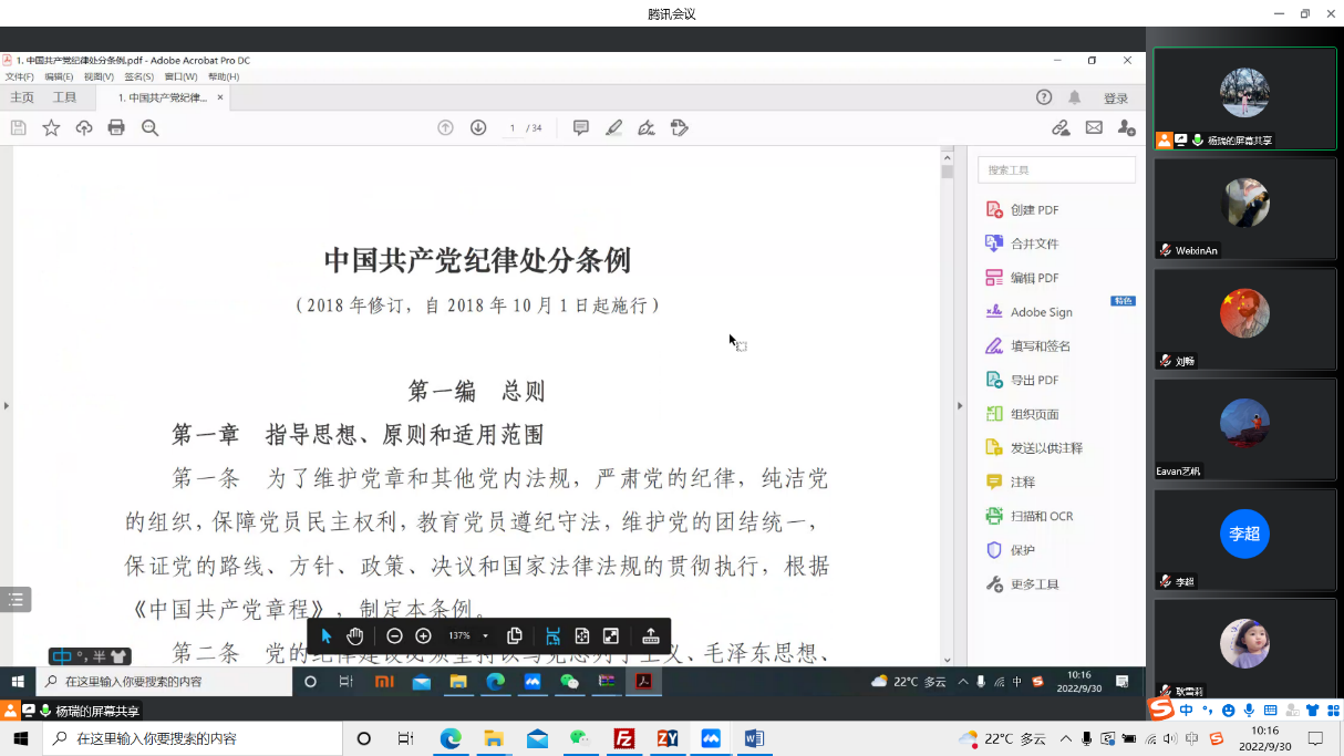 为抓好纪律教育学习的组织落实,博士第一党支部把纪律教育宣传月活动列入支部工作重要议事日程,采取了一系列措施确保教育活动落到实处。9月12日,支部召开支委会,党支部书记刘梦琨传达了《pp电子官方网站党委关于在全院开展纪律教育宣传月活动的通知》文件精神。会议强调,要把纪律教育学习宣传月活动作为支部加强作风建设的重要抓手,深入开展党性教育、纪律教育、警示教育和廉洁文化教育,深化廉洁校园建设,为扎实落实好立德树人根本任务营造风清气正的校园环境。随后,支委会研究活动实施方案,细化量化活动时间、内容、方法、步骤等,为保证活动取得实效奠定了基础。