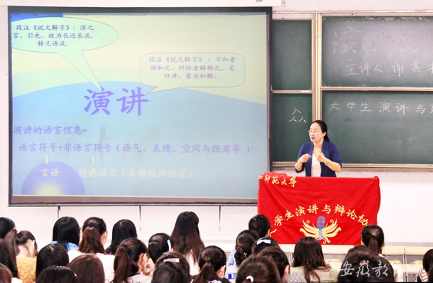 10月18日,该校政法学院党委副书记谢其梅在科讲101为大学生做了题为《演讲的艺术》的讲座。讲座中,她在阐释演讲学的基本理论的同时,将演讲与法庭辩论、政治演说、思想政治工作密切结合,鼓励学生们敢于表达、善于表达,确立起专业的自信。