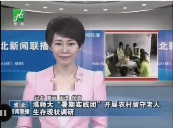 淮北电视台在2014年7月15日的直播淮北节目中,在节目头条报导了beat365“薪火阳光耀西部”2014年暑期社会实践活动。在当日新闻联播节目中,报导了beat365暑期社会实践重点团队——生命科学学院“美丽中国”实践团队开展留守老人生存现状调研活动。
