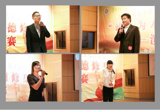 比赛过程中,选手们满怀信心,激情洋溢。有的紧扣“诚信为本,立德修身”的主题阐发理解,有的结合自身经历表达了“我诚信,我美丽”的心声,有的自创诗词演绎“诚信与立德并行,修身共利他齐飞”,有的结合当代社会道德现状,通过列举古今中外诚信自强的事迹,呼吁大学生“做诚信人,怀感恩心,树自强志”。一句句扣人心弦、动人心魄的话语给现场观众带来了心灵的震撼,也使全场观众接受了精神的洗礼。多人组合的演讲形式和《做个诚信人》的歌曲演唱更是把比赛推向了高潮。