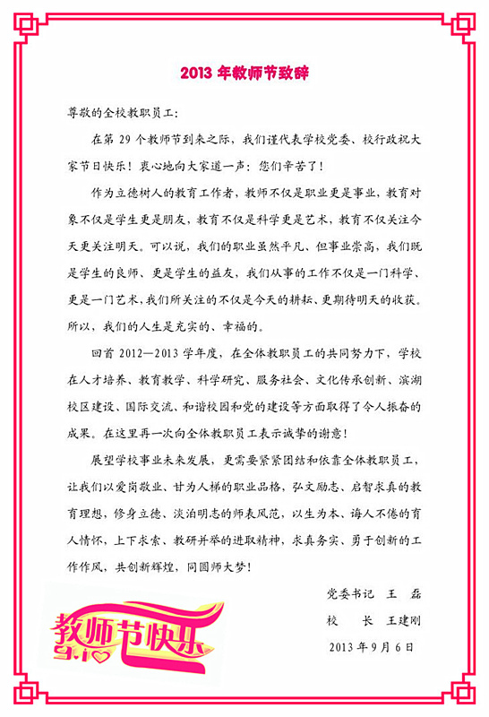 2013年教师节致辞