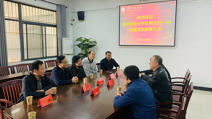 10月30日上午,徐州医科大学党委常委、组织部长、离退办主任杜刚一行7人到beat365离退处进行对口交流学习。座谈会由离退处处长张开林主持。离退处相关科室人员参加交流座谈。