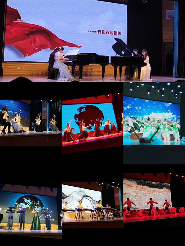 在师生共同努力下,历经两个多月的悉心准备,音乐会由富有优美中国风的舞蹈《茉莉花开》拉开了序幕,表演者舞姿曼妙,音乐清婉,引起了观众阵阵惊叹。器乐表演节目中,节奏欢快、代入感很强的琵琶四人合奏《火把节之夜》,让人眼前一亮的钢琴八手联弹《我和我的祖国》、钢琴独奏《思恋》,古筝五人合奏《秦土情》等带领观众们走进不一样的意境;而小提琴独奏《沉思》《流浪者之歌》两首风格不同的作品带给观众不一样的感受;竹笛合奏《喜相逢》表达了师生共欢乐、同成长的心声。声乐独唱《卜算子·咏梅》《虞美人·听雨》《女人善变》《红旗颂》《安宁·安宁》等让同学们感受到了学院青年老师的丰厚功底。藏族舞蹈《热萨玛》等让大家大饱眼福。音乐会在学院传统舞蹈节目《黄河》拉下帷幕。整台节目精彩纷呈、样式新颖、高潮迭出,为全体新生带来了一场视觉、听觉盛宴。