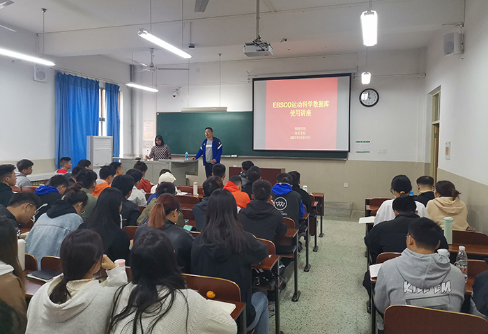 11月18日下午,图书馆和体育学院联合举办EBSCO运动科学数据库培训讲座。EBSCO公司安徽区培训师张玉兰为主讲人,体育学院师生参加了培训讲座。