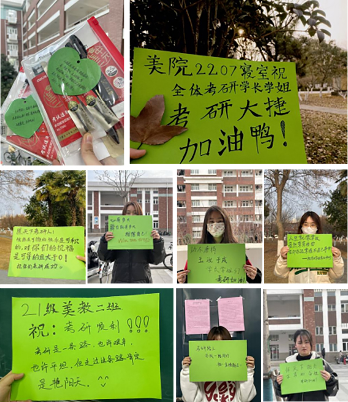 活动最后,各位老师向全体考研学子们送上由学院精心准备的“考研福袋”,福袋中有考研所需文具以及师生送上的考研祝福卡。低年级学生还通过各种方式表达了对学姐学长的美好祝愿。