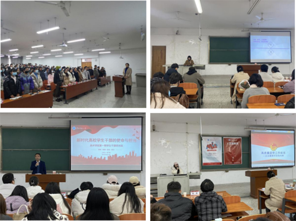此次培训围绕“新时代高校学生干部的使命与担当”、“学生干部执行力提升”、“主题团日活动开展”、“学生干部常见的问题与对策”、“学生干部在资助工作中的作用”“学生干部心理压力疏导”、“学生活动宣传文案与图片要求”、“学科竞赛组织”等七个专题展开。