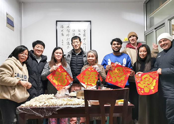 1月28日,在虎年春节即将到来之际,国际交流与合作处副处长李书影及相关工作人员走进外教、留学生公寓看望并慰问了寒假期间留校的外籍师生。为了营造迎新春、庆新年的喜庆氛围,慰问结束后还开展了“迎新春·包饺子”的中华文化体验活动。