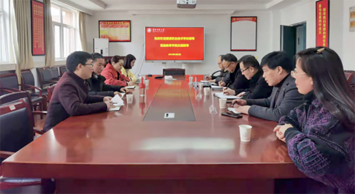 3月1日下午,濉溪县职业技术学校副校长徐峰、科研主任马联合、教导主任王宏亮、教研室主任关存善、教师王秀云等一行五人到教育学院考察交流,学院党委书记李曙光、院长张家年、学前系主任王耀祖、辅导员白玉等参加了座谈交流会。