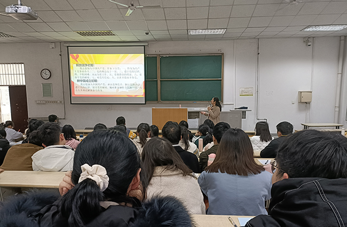 学院高度重视本次集中培训。院党委书记李琴主持开班典礼,并主讲首场党课《学习党章历史,坚定理想信念》。李琴结合中国共产党一百年的发展历程,生动讲解了党章制定与修订完善的历史。让同学们对党章内容有了更加清晰具体的理解,明白中国共产党艰难曲折的发展历程和与时俱进的政治品质。李琴还结合个人学习体会,对党的十九届六中全会精神进行了宣讲。院长李峰主讲《从发展看四个自信的底气》,全面剖析了“四个自信”与我国根本制度、基本制度、重要制度的关系,进一步启发学生们对“四个自信”的理解,从而教导他们坚定中国特色社会主义道路自信、理论自信、制度自信、文化自信,早日成为一名合格的社会主义现代化事业的建设者和接班人。校党委宣传部常务副部长王向阳应邀主讲的《把稳思想之舵,才能行稳致远》课程,用生动形象的语言向同学们介绍了意识形态的发展史和意识形态领域的斗争形态,殷切告诫同学们在意识形态领域不要犯方向性错误,在政治领域不要犯原则性错误,特别提醒同学们网上并不是法外之地,要时刻保持警惕以免引发舆情。院党委副书记谢红霞主讲《党的纪律与纪律处分条例》,结合党内腐败事例,详细介绍了党的六大纪律,同时教育并引导同学们:学习了解党的纪律发展史、牢记党的纪律的严肃性;严格遵守党的政治纪律,不断提高政治判断力、政治领悟力、政治执行力。