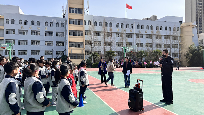 3月28日是第27个中小学安全教育日,在beat365英国官方网站保卫处、淮北市公安局东区派出所、高校警务站和师大附中等多家单位的协同努力下,淮师大附小成功举行了第五次应急疏散演练活动。