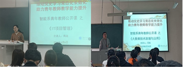 本次公开课活动由石松、高迪、王婧3名智能系青年教师担任主讲。三位教师非常重视本次活动,课前积极准备,认真备课,钻研教材,精心设计每一个教学环节。把“立德树人”作为教育的根本任务,教学融入党史教育和课程思政元素,注重知识传授的同时,引导学生树立正确的价值观,激发学生的民族自豪感。公开课结束后,学院督导组对每位教师进行了悉心指导,充分肯定了老师们课堂教学的亮点,并针对教学过程中存在的问题提出了宝贵的意见。青年教师认真听取了专家们的意见,纷纷表示受益匪浅。