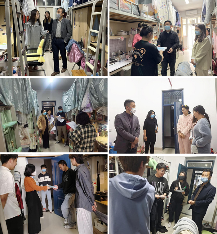 4月19日至20日,美术学院领导班子成员携全体辅导员根据包保分工,深入学生宿舍,走访各年级,深入了解疫情防控工作开展情况,督导并协助开展防疫工作。